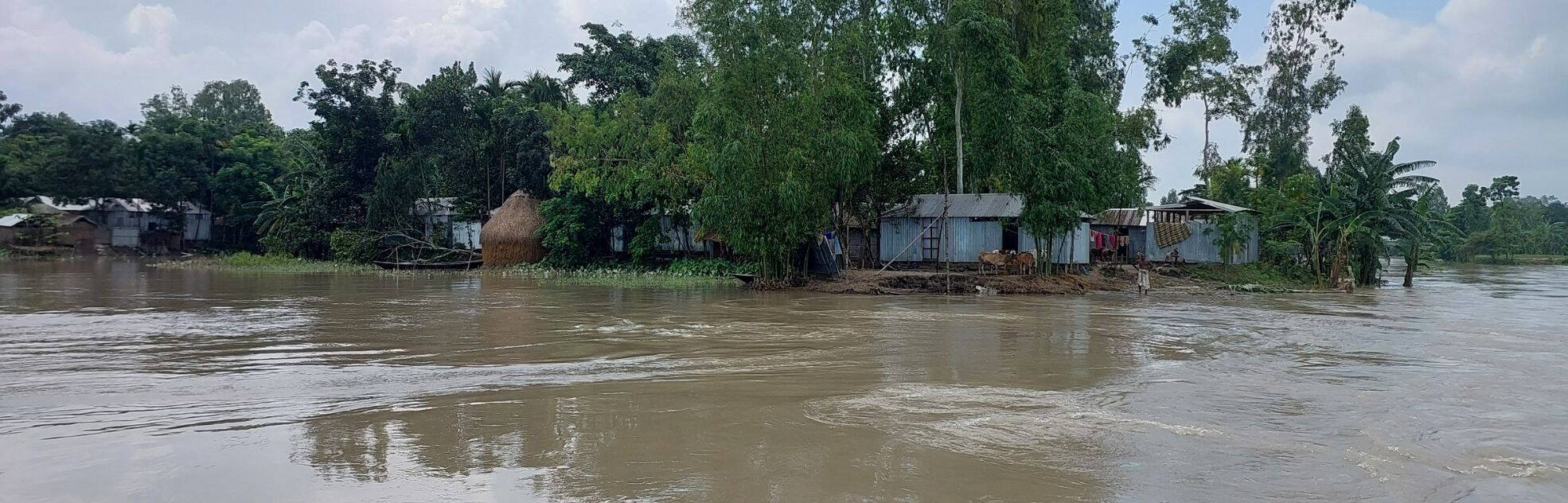 Juli 2024: In unserer Projektregion im Nordwesten von Bangladesch kam es zu schweren Überschwemmungen. Die Flut bringt insbesondere armutsbetroffene Bevölkerungsgruppen in grosse Not. Wir unterstützen unsere lokale Partnerorganisation darin, Nothilfe zu leisten.