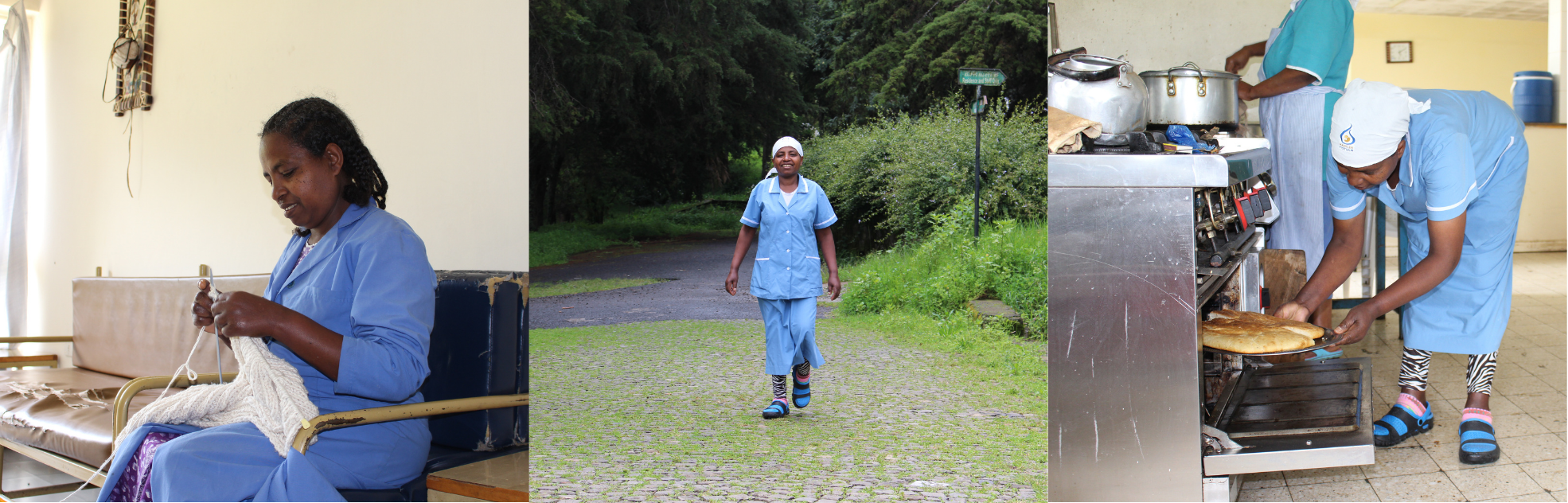 Mittlerweile Mitte 30, durchläuft Belayenesh verschiedene Schulungen in den Bereichen Gemüseanbau, Milchwirtschaft und Gastfreundschaft. Sie arbeitet nun als Bäckerin in der Mensa des Hamlin College of Midwives und näht gerne.