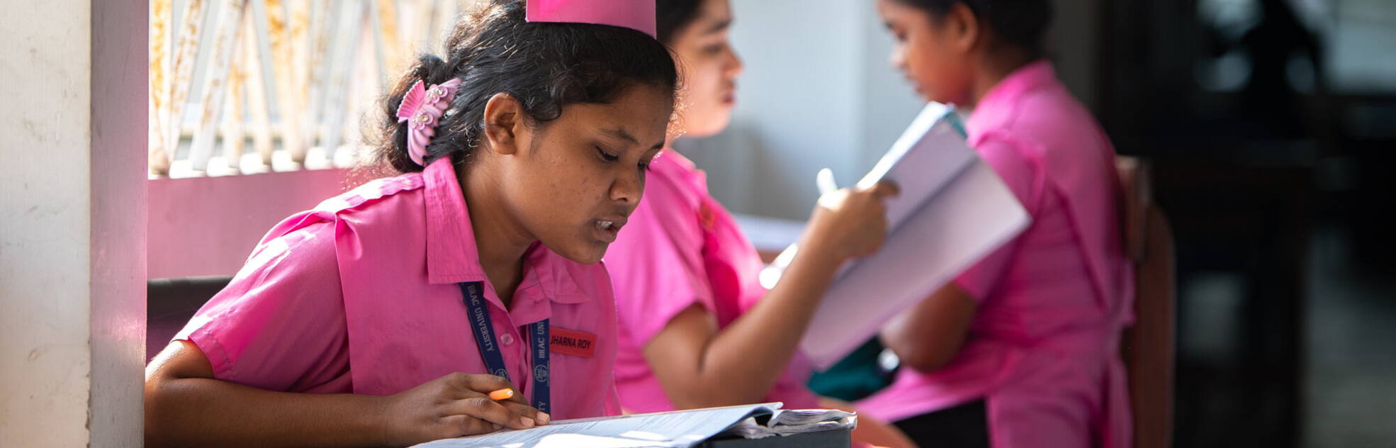Titelbild: Krisenresistenter dank Ausbildung: angehende Hebamme in Bangladesch; Foto: Adam Dickens
