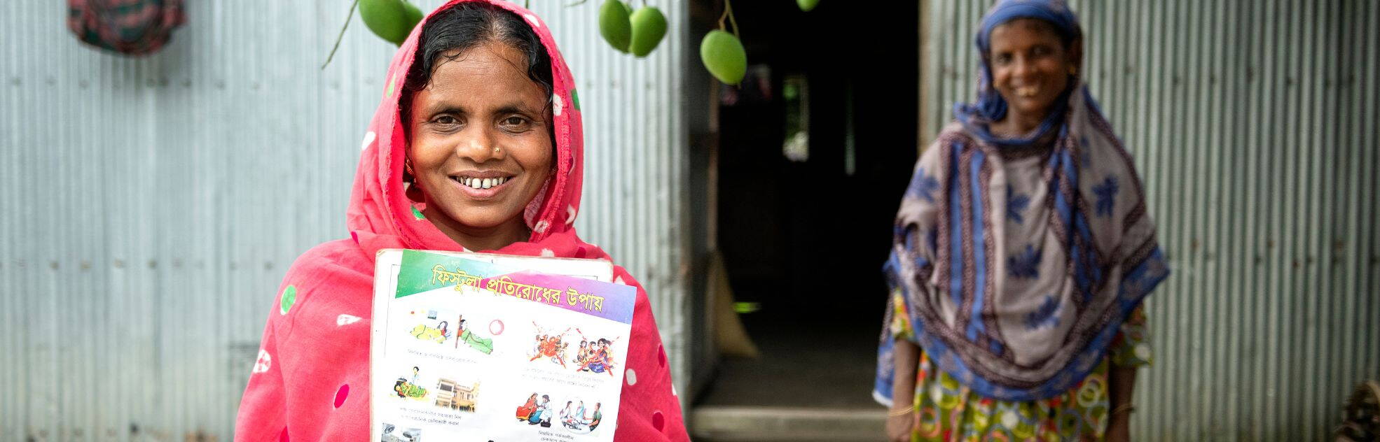 Titelbild: Hasina Begum (35), Fistelüberlebende klärt Frauen in ihrer Gemeinschaft über Fisteln auf. Foto: Farhana Akther/WHI/Fairpicture.